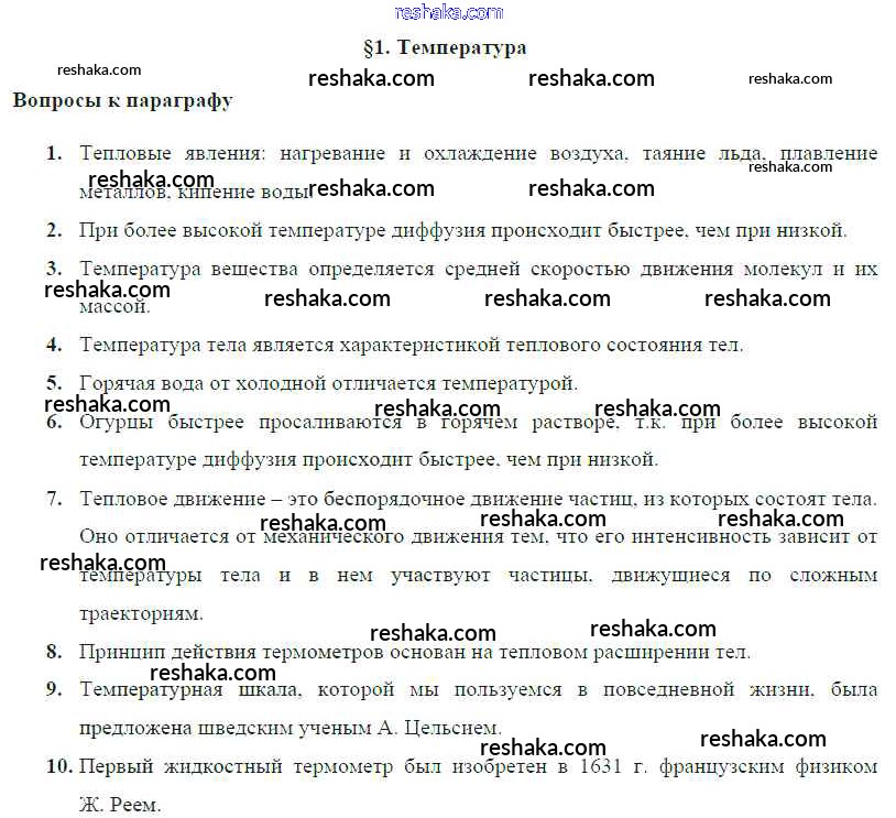 Решака - онлайн ответы Физика Громов, Родина за 8 класс Учебник ФГОС 2018 - § 1. Температура
