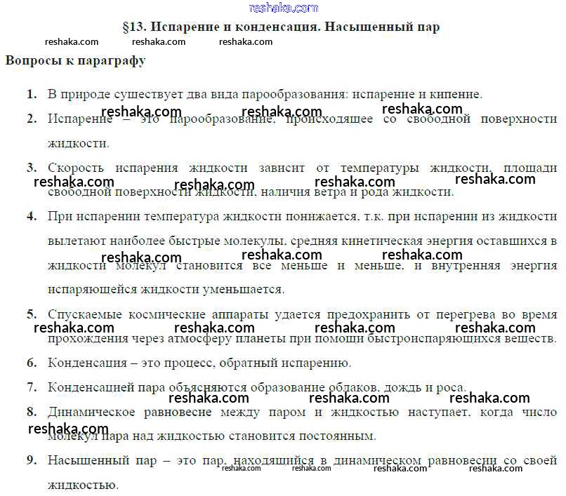 Решака - онлайн ответы Физика Громов, Родина за 8 класс Учебник ФГОС 2018 - § 13. Испарение и конденсация. Насыщенный пар