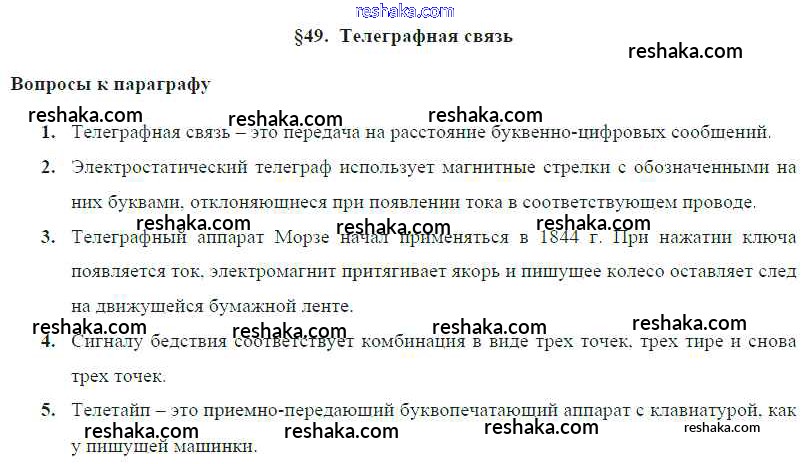 Решака - онлайн ответы Физика Громов, Родина за 8 класс Учебник ФГОС 2018 - § 49. Телеграфная связь