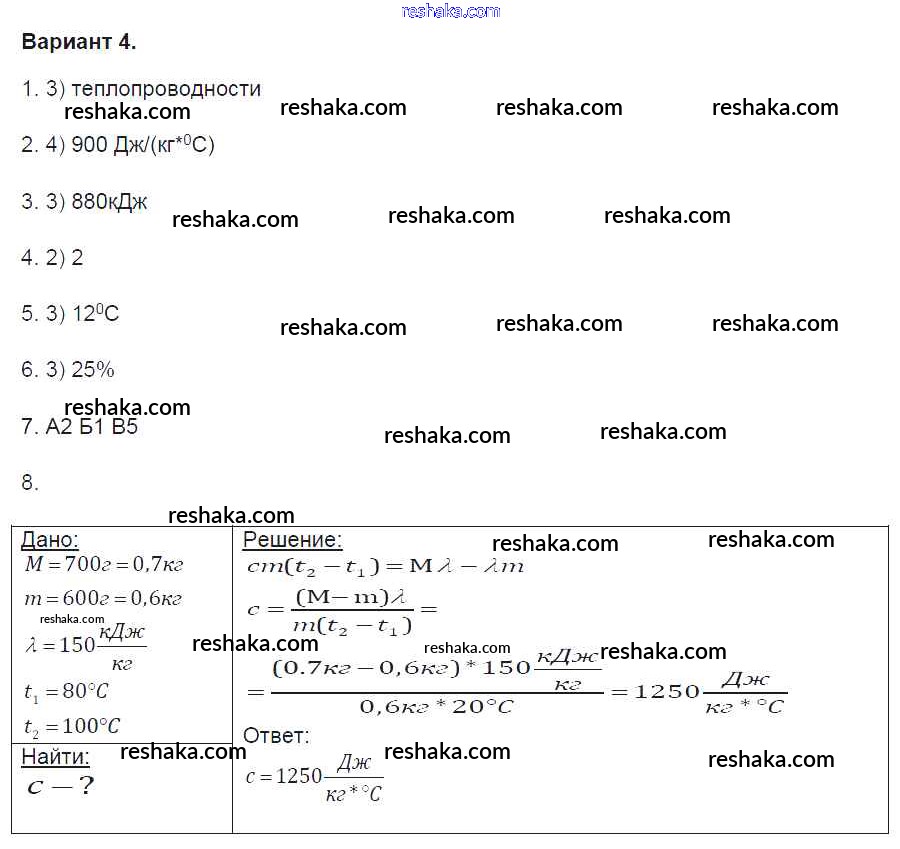 Решака - онлайн ответы Физика Громцева за 8 класс Контрольные и самостоятельные работы ФГОС 2017 - вариант-4