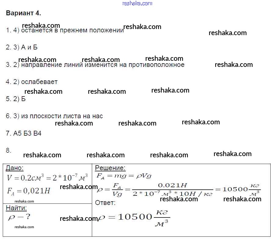 Решака - онлайн ответы Физика Громцева за 8 класс Контрольные и самостоятельные работы ФГОС 2017 - вариант-4