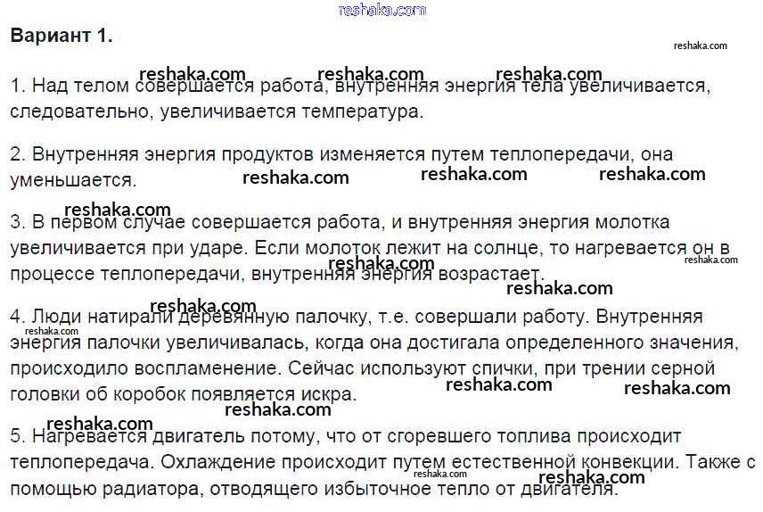 Решака - онлайн ответы Физика Громцева за 8 класс Контрольные и самостоятельные работы ФГОС 2017 - вариант-1