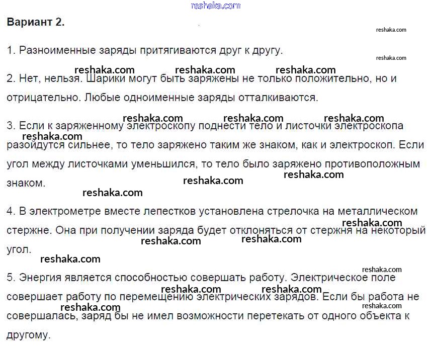 Решака - онлайн ответы Физика Громцева за 8 класс Контрольные и самостоятельные работы ФГОС 2017 - вариант-2