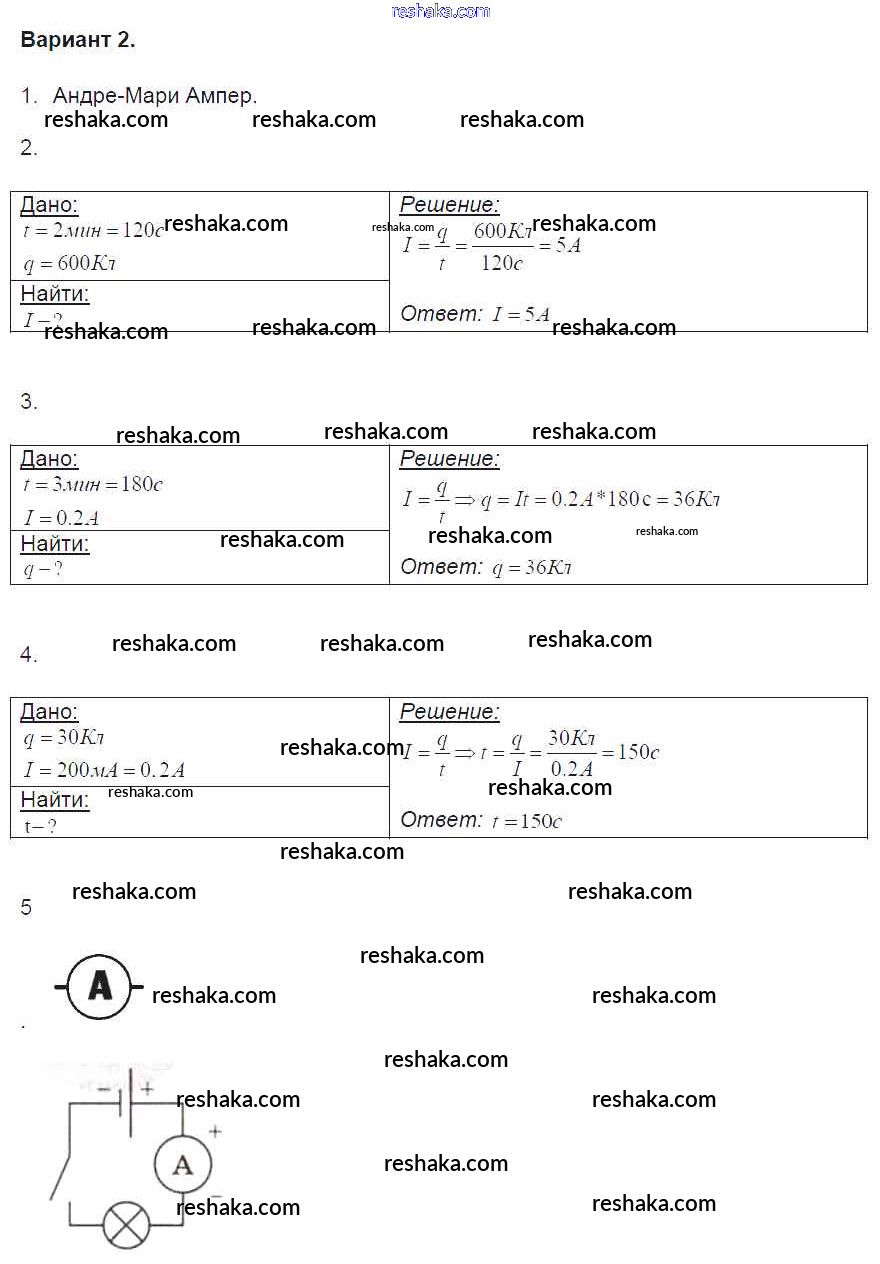 Решака - онлайн ответы Физика Громцева за 8 класс Контрольные и самостоятельные работы ФГОС 2017 - вариант-2