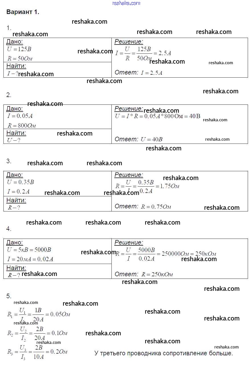Решака - онлайн ответы Физика Громцева за 8 класс Контрольные и самостоятельные работы ФГОС 2017 - вариант-1