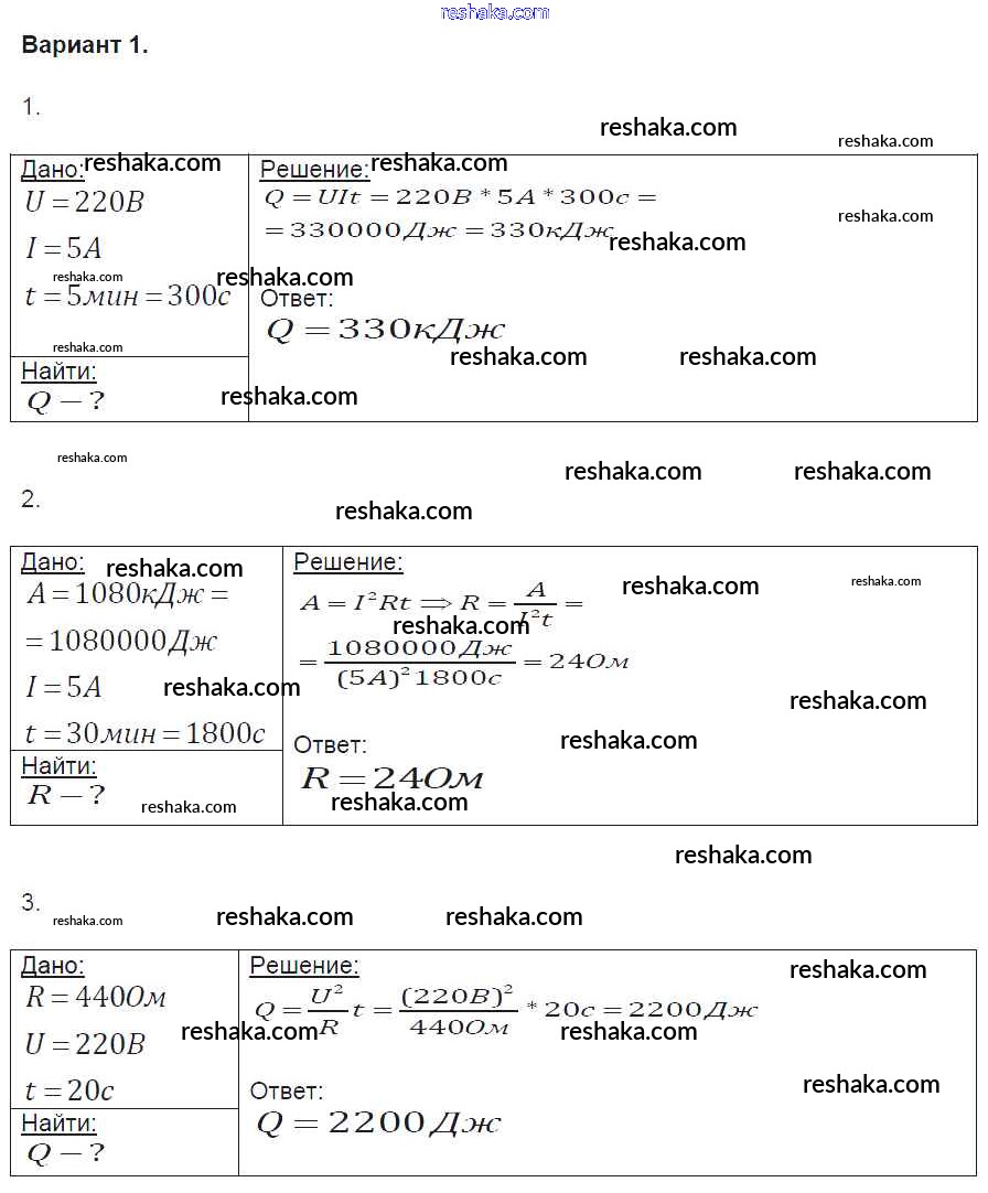 Решака - онлайн ответы Физика Громцева за 8 класс Контрольные и самостоятельные работы ФГОС 2017 - вариант-1