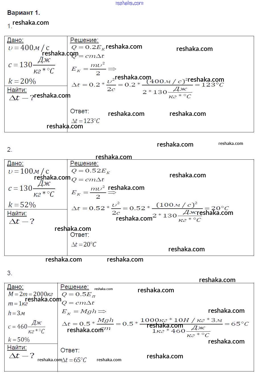 Решака - онлайн ответы Физика Громцева за 8 класс Контрольные и самостоятельные работы ФГОС 2017 - вариант-1