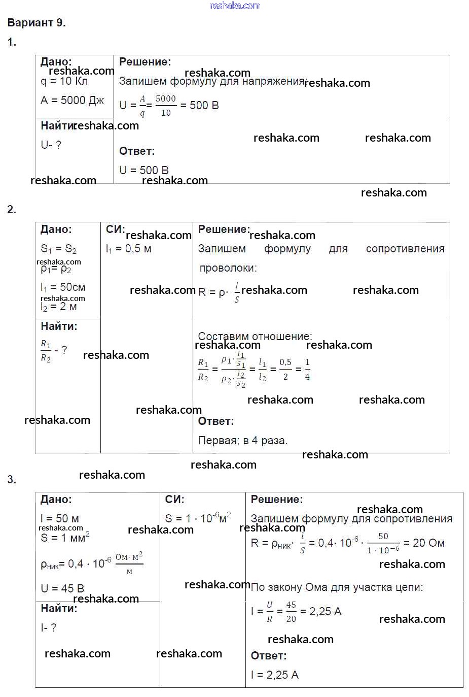 Решака - онлайн ответы Физика Марон за 8 класс Дидактические материалы ФГОС 2016 - 9