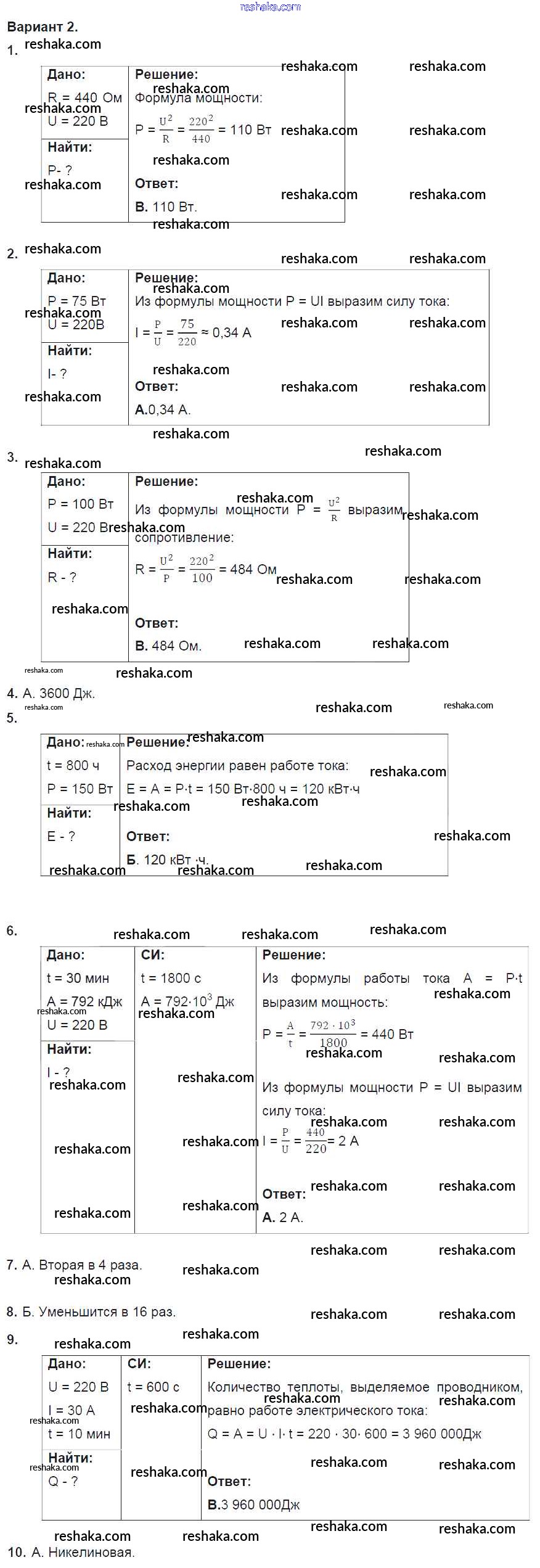 Решака - онлайн ответы Физика Марон за 8 класс Дидактические материалы ФГОС 2016 - 2