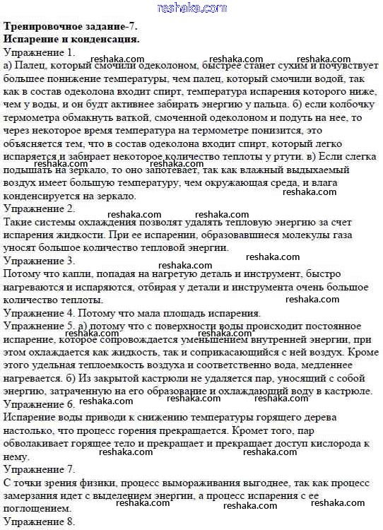 Решака - онлайн ответы Физика Марон за 8 класс Дидактические материалы ФГОС 2016 - 7. Испарение и конденсация