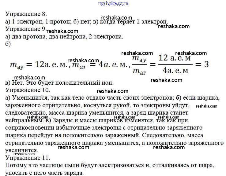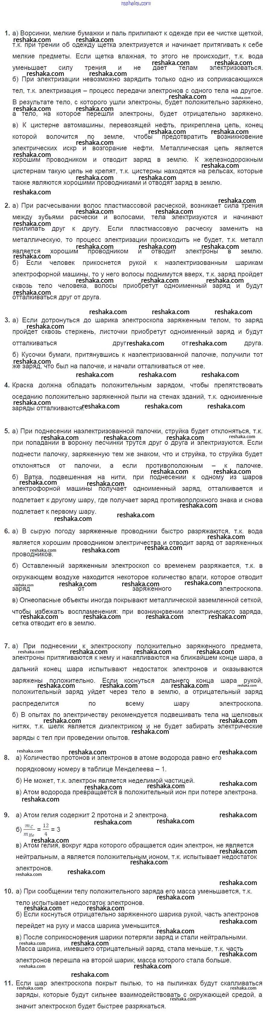 Решака - онлайн ответы Физика Марон за 8 класс Дидактические материалы ФГОС 2016 - 8. Электризация тел. Электрическое поле. Строение атомов