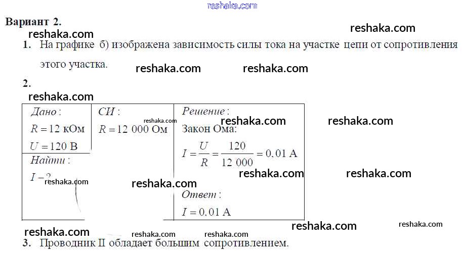 Решака - онлайн ответы Физика Марон за 8 класс Самостоятельные и контрольные работы ФГОС 2017 - Вариант-2