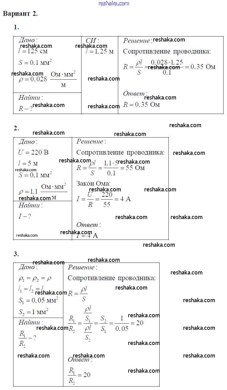 Решака - онлайн ответы Физика Марон за 8 класс Самостоятельные и контрольные работы ФГОС 2017 - Вариант-2