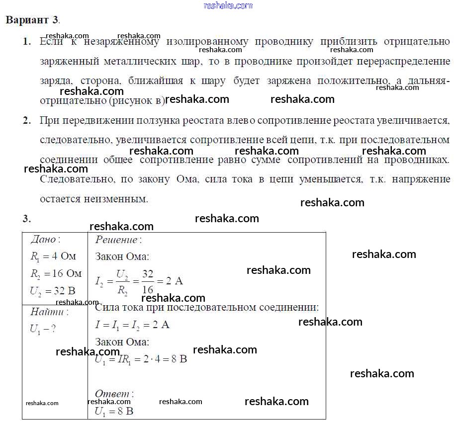 Решака - онлайн ответы Физика Марон за 8 класс Самостоятельные и контрольные работы ФГОС 2017 - Вариант-3