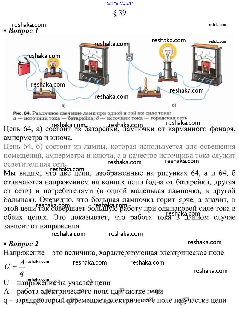 Решака - онлайн ответы Физика Перышкин за 8 класс Учебник ФГОС 2014 - § 39