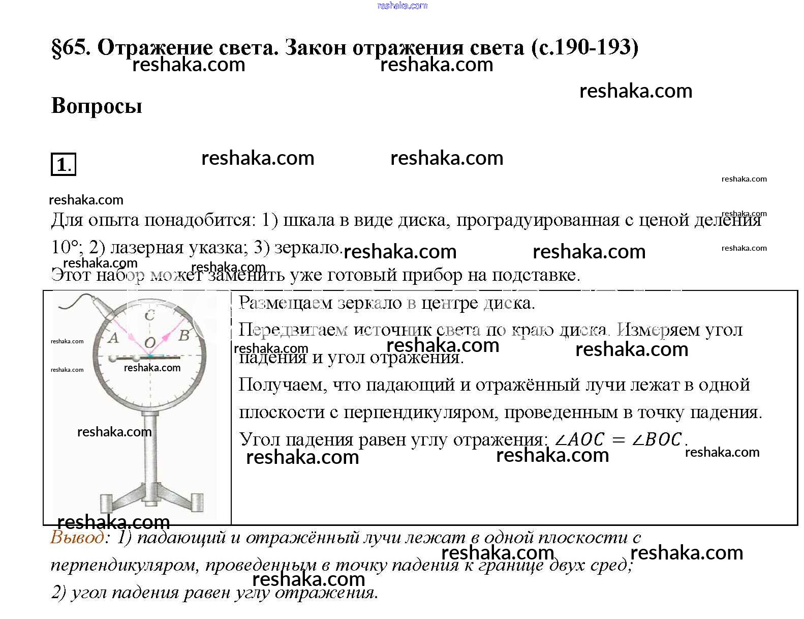 Решака - онлайн ответы Физика Перышкин за 8 класс Учебник ФГОС 2014 - § 65