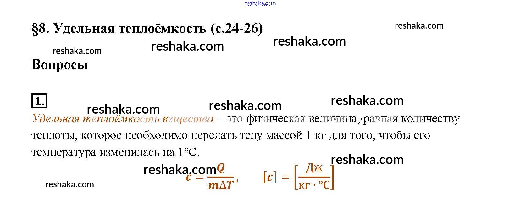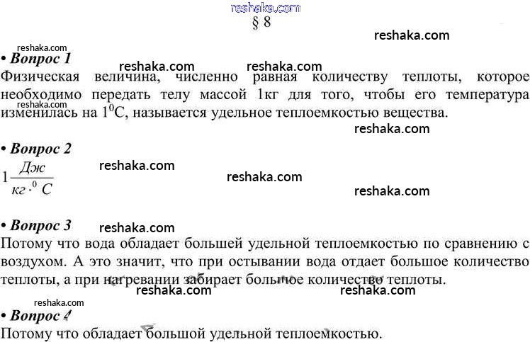 Решака - онлайн ответы Физика Перышкин за 8 класс Учебник ФГОС 2014 - § 8