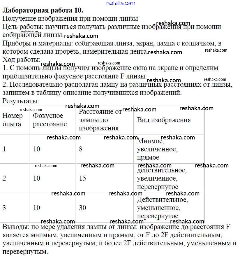 Решака - онлайн ответы Физика Перышкин за 8 класс Учебник ФГОС 2014 - ЛР-10