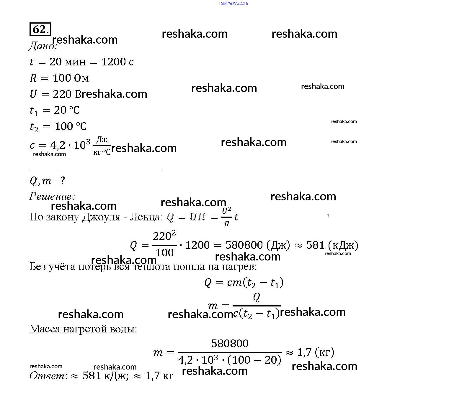 Решака - онлайн ответы Физика Перышкин за 8 класс Учебник ФГОС 2014 - 62