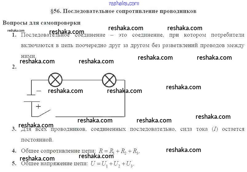 Решака - онлайн ответы Физика Пурышева, Важеевская за 8 класс Учебник ФГОС 2017 - § 56. Последовательное сопротивление проводников