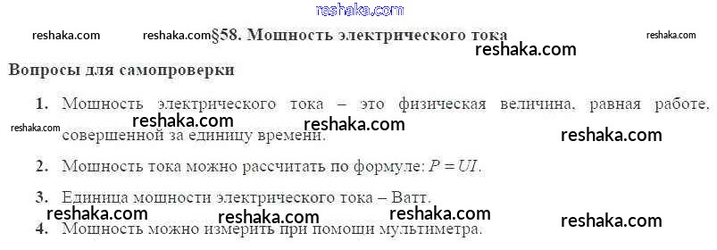 Решака - онлайн ответы Физика Пурышева, Важеевская за 8 класс Учебник ФГОС 2017 - § 58. Мощность электрического тока