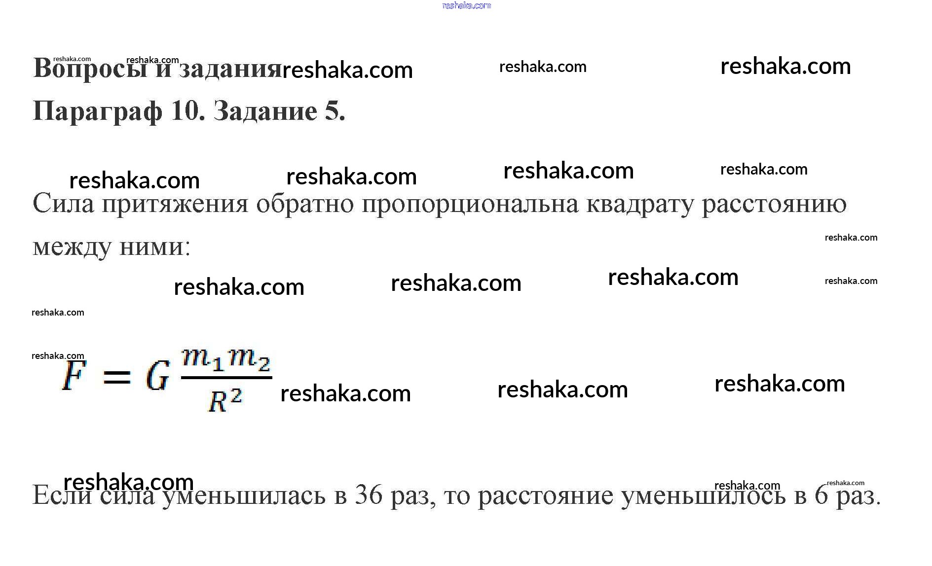 механические явления / 10. Закон всемирного тяготения / задание / 5