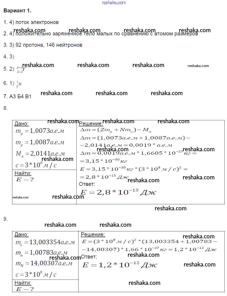 Решака - онлайн ответы Физика Громцева за 9 класс Контрольные и самостоятельные работы ФГОС 2017 - 1