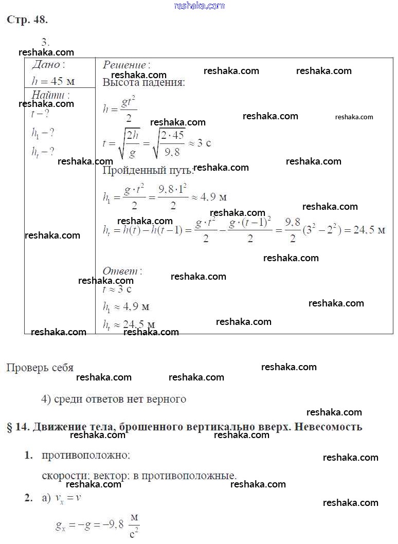 Решака - онлайн ответы Физика Касьянов, Дмитриева за 9 класс Рабочая тетрадь ФГОС 2017 - 48