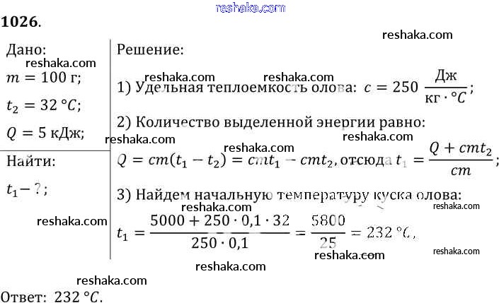 Решака - онлайн ответы Физика Лукашик, Иванова за 7-9 класс Сборник задач ФГОС 2011 - 1026