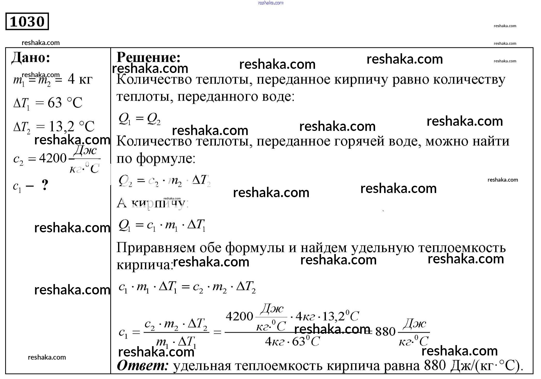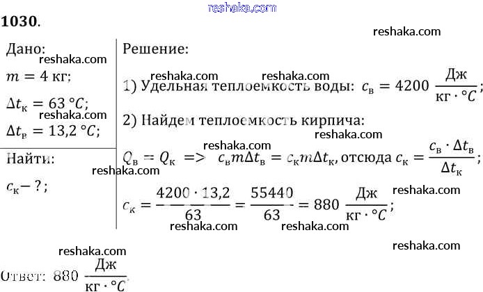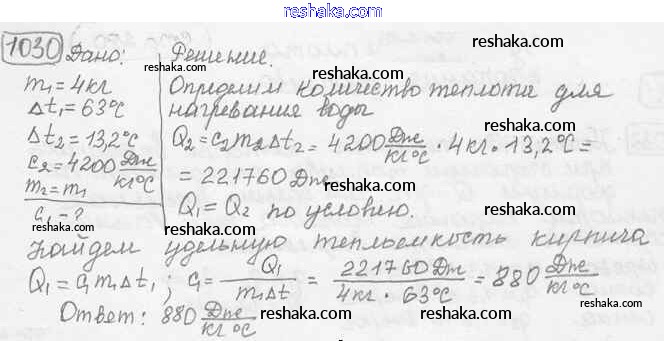 Решака - онлайн ответы Физика Лукашик, Иванова за 7-9 класс Сборник задач ФГОС 2011 - 1030