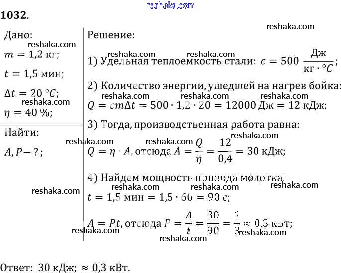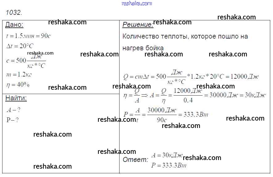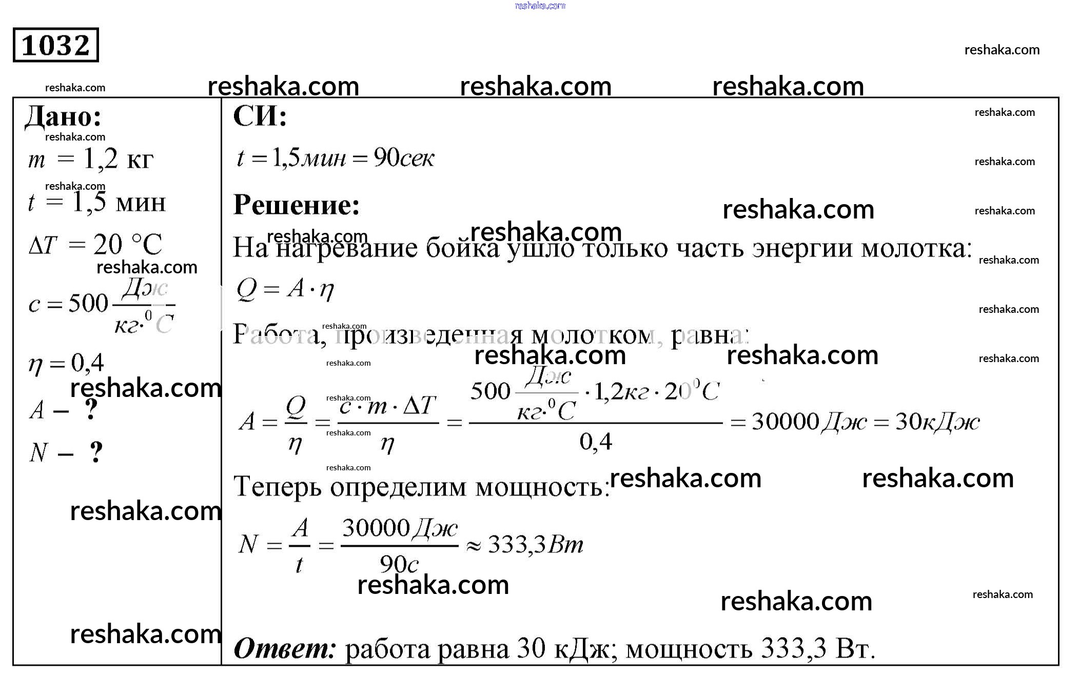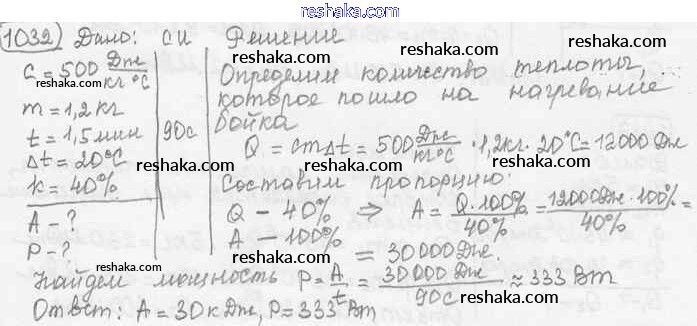 Решака - онлайн ответы Физика Лукашик, Иванова за 7-9 класс Сборник задач ФГОС 2011 - 1032