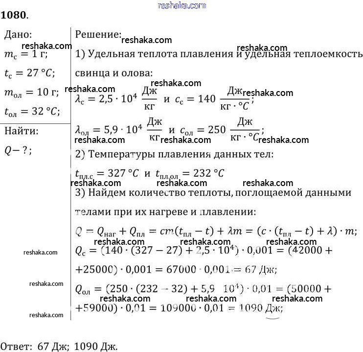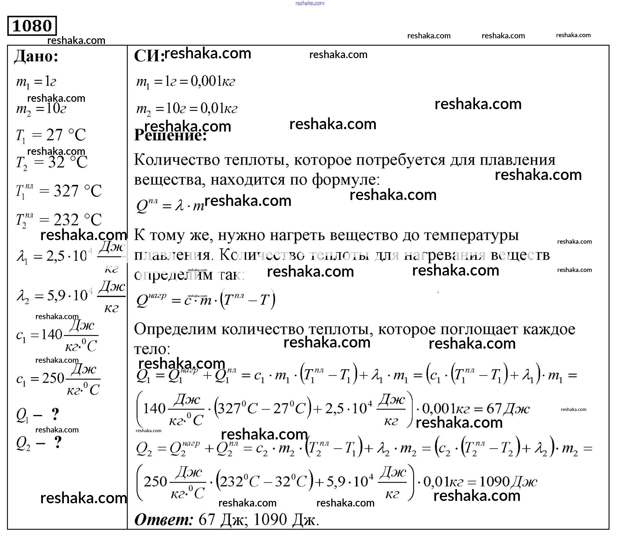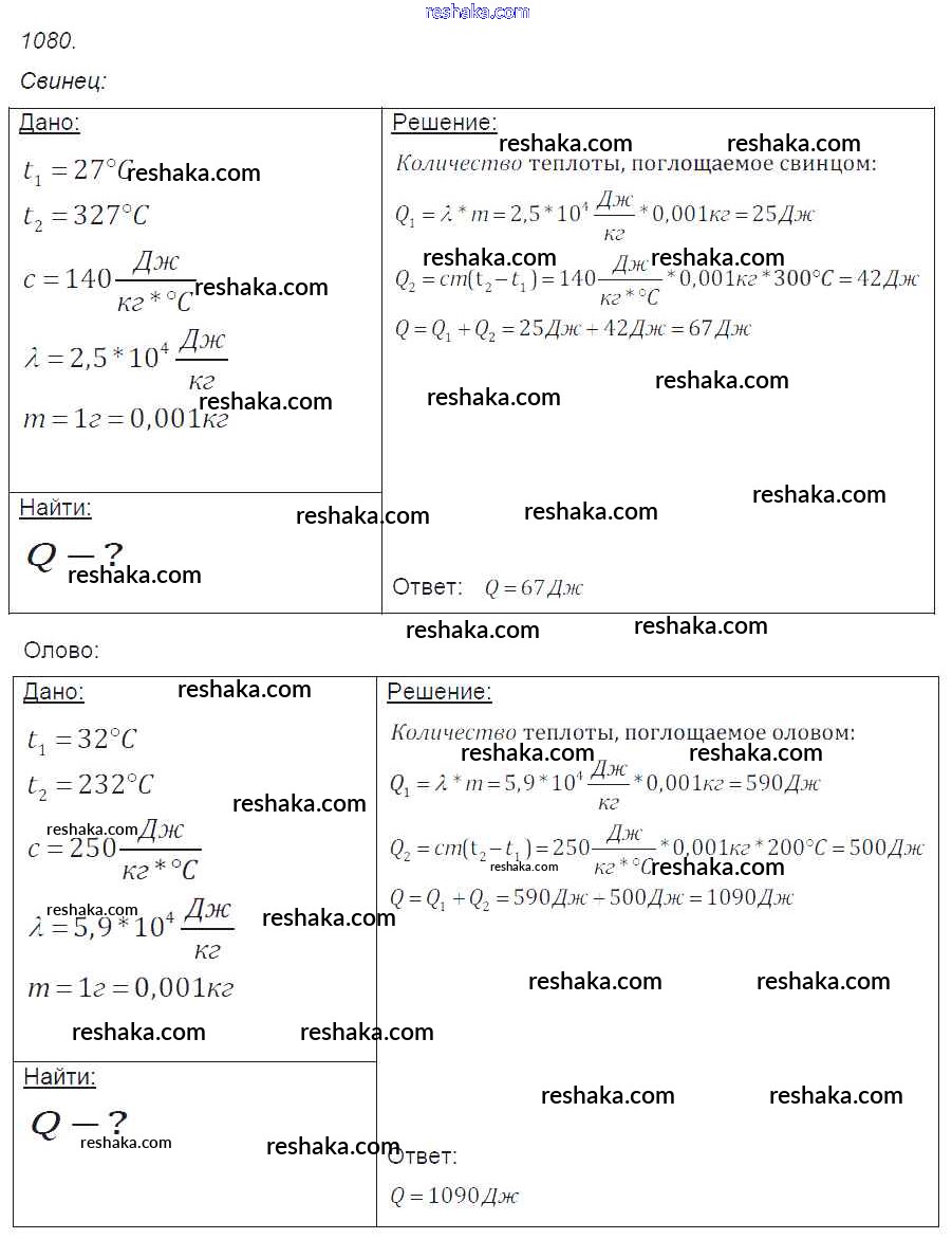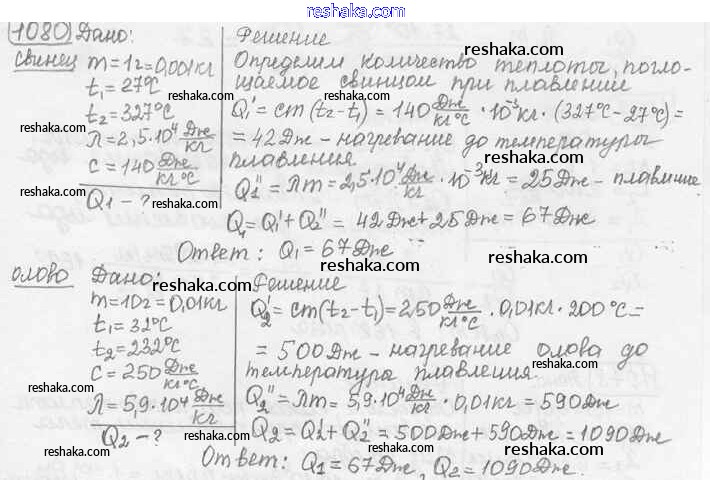 Решака - онлайн ответы Физика Лукашик, Иванова за 7-9 класс Сборник задач ФГОС 2011 - 1080