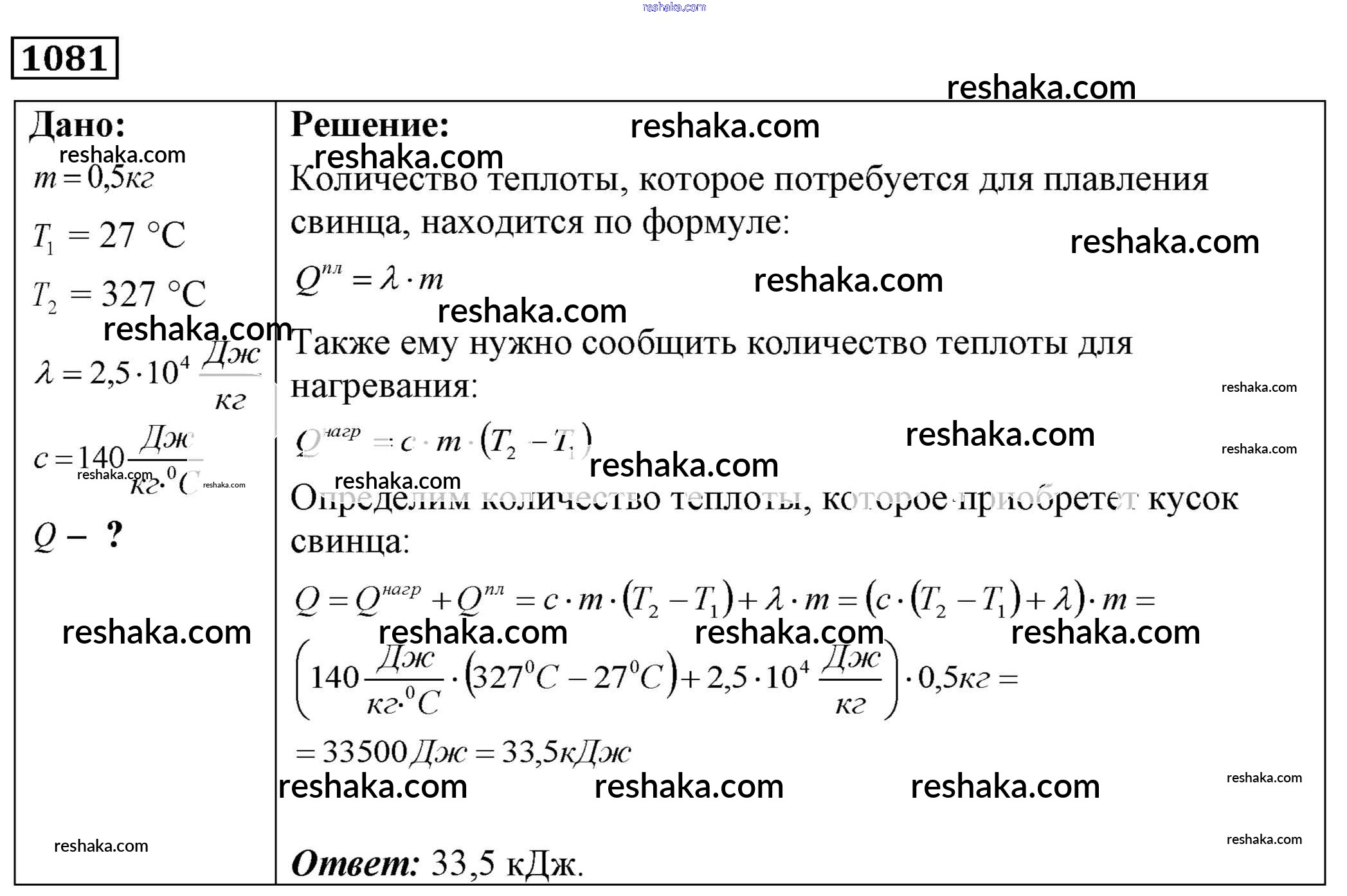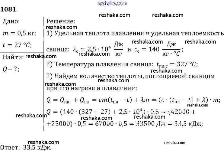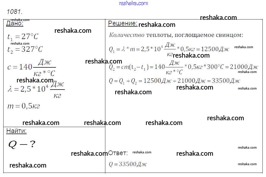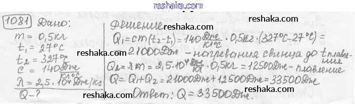 Решака - онлайн ответы Физика Лукашик, Иванова за 7-9 класс Сборник задач ФГОС 2011 - 1081