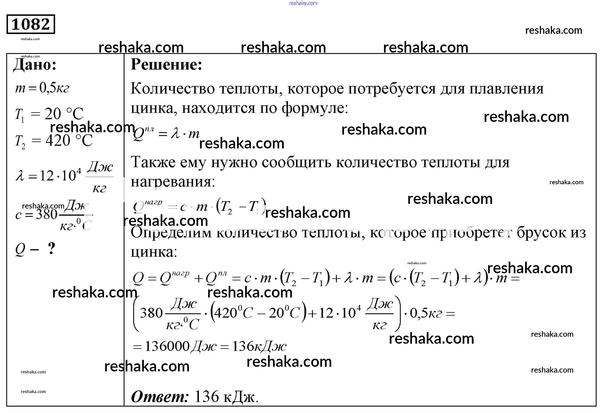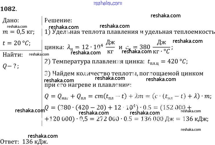 Решака - онлайн ответы Физика Лукашик, Иванова за 7-9 класс Сборник задач ФГОС 2011 - 1082