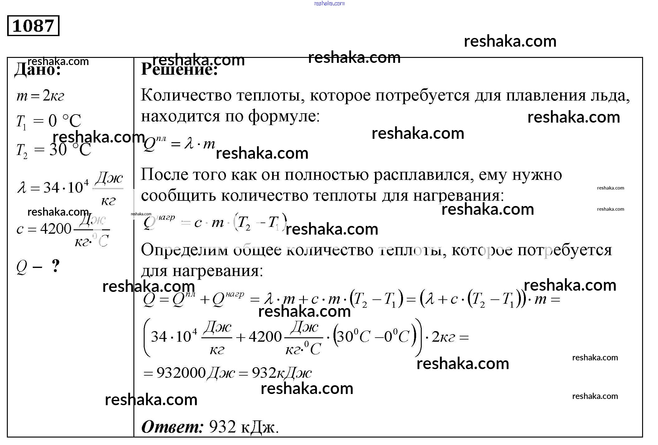 Решака - онлайн ответы Физика Лукашик, Иванова за 7-9 класс Сборник задач ФГОС 2011 - 1087