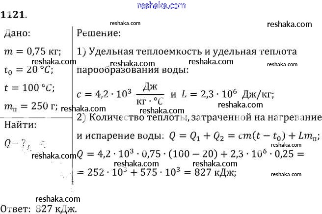 Решака - онлайн ответы Физика Лукашик, Иванова за 7-9 класс Сборник задач ФГОС 2011 - 1121