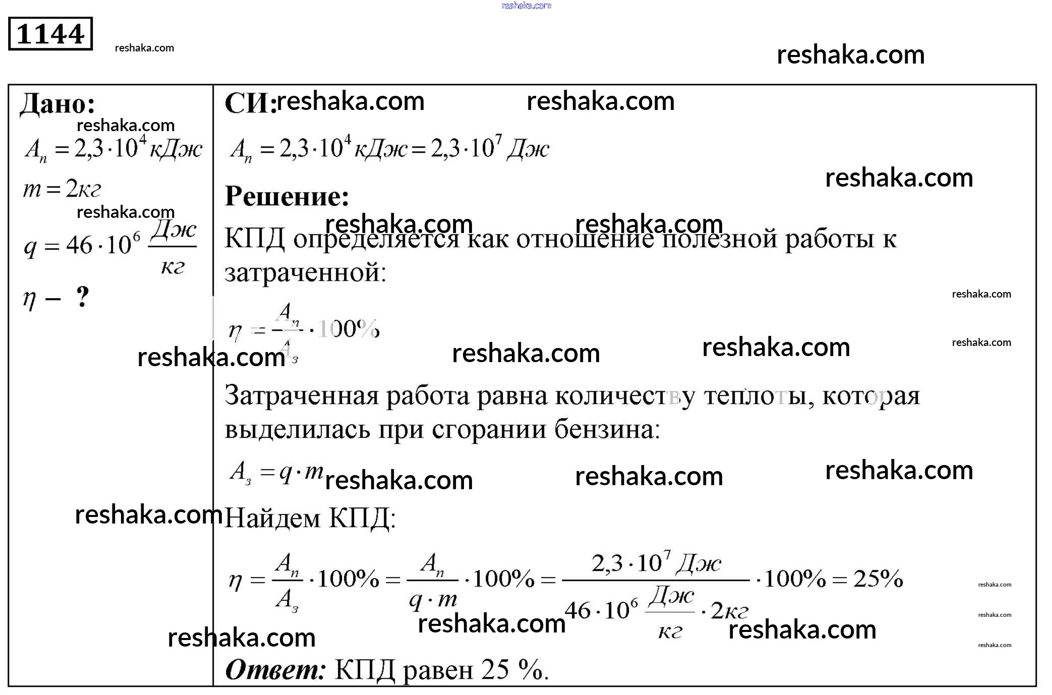 Решака - онлайн ответы Физика Лукашик, Иванова за 7-9 класс Сборник задач ФГОС 2011 - 1144