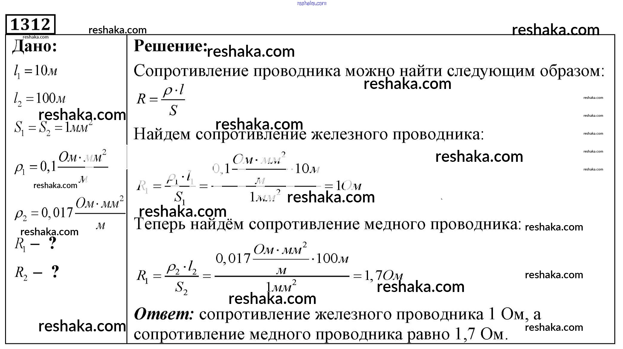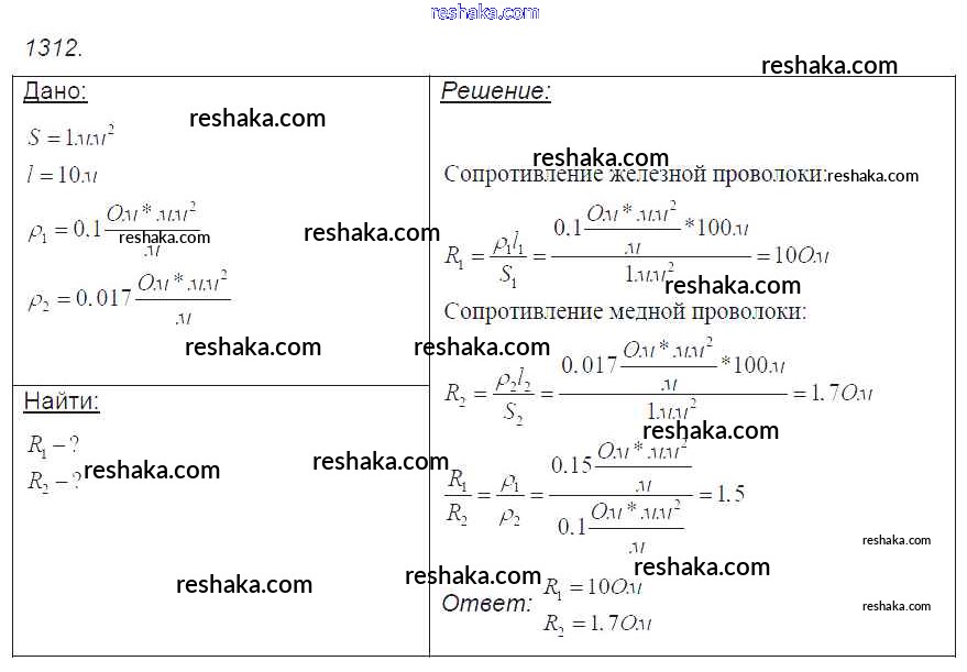 Решака - онлайн ответы Физика Лукашик, Иванова за 7-9 класс Сборник задач ФГОС 2011 - 1312