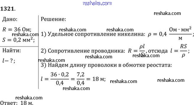Решака - онлайн ответы Физика Лукашик, Иванова за 7-9 класс Сборник задач ФГОС 2011 - 1321