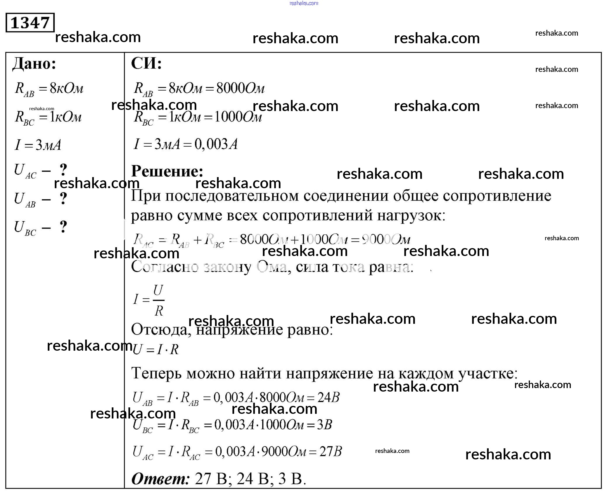 Решака - онлайн ответы Физика Лукашик, Иванова за 7-9 класс Сборник задач ФГОС 2011 - 1347