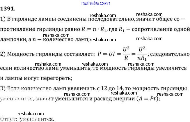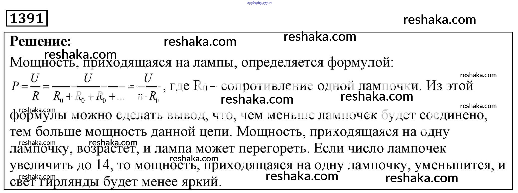 Решака - онлайн ответы Физика Лукашик, Иванова за 7-9 класс Сборник задач ФГОС 2011 - 1391