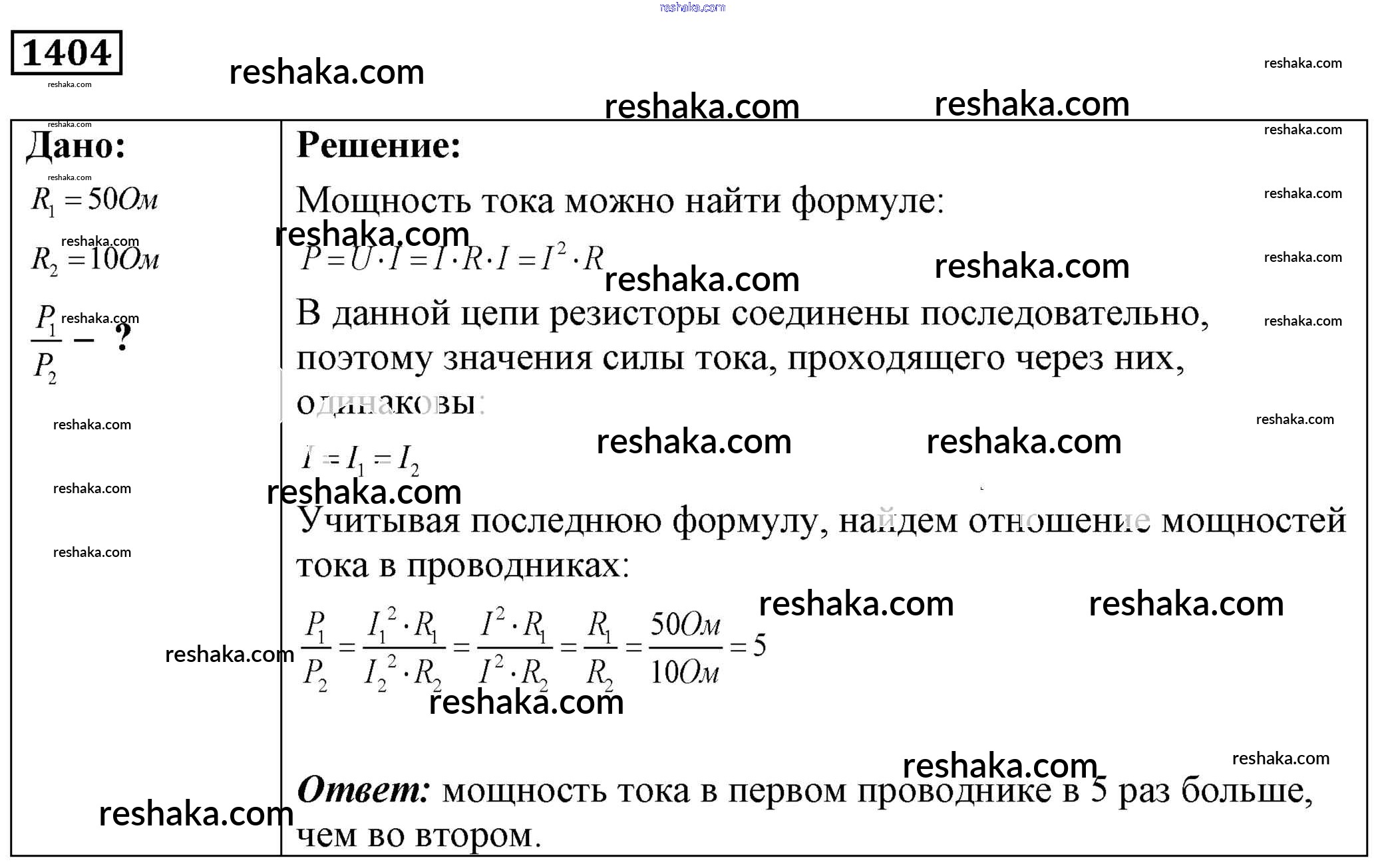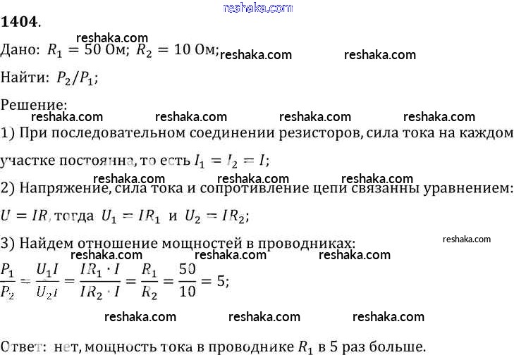 Решака - онлайн ответы Физика Лукашик, Иванова за 7-9 класс Сборник задач ФГОС 2011 - 1404