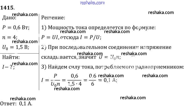 Решака - онлайн ответы Физика Лукашик, Иванова за 7-9 класс Сборник задач ФГОС 2011 - 1415