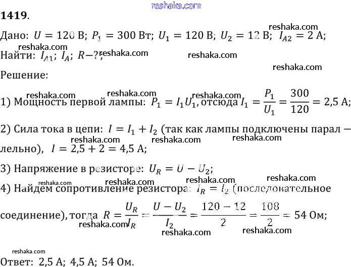 Решака - онлайн ответы Физика Лукашик, Иванова за 7-9 класс Сборник задач ФГОС 2011 - 1419