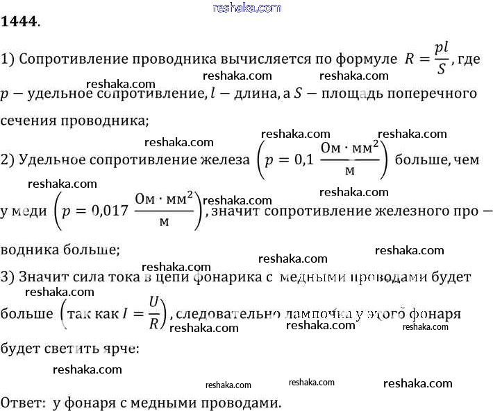 Решака - онлайн ответы Физика Лукашик, Иванова за 7-9 класс Сборник задач ФГОС 2011 - 1444
