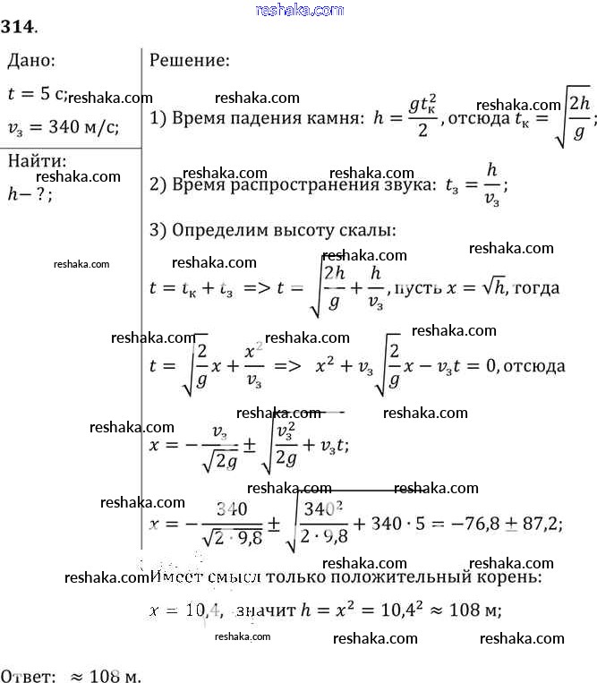 Решака - онлайн ответы Физика Лукашик, Иванова за 7-9 класс Сборник задач ФГОС 2011 - 314