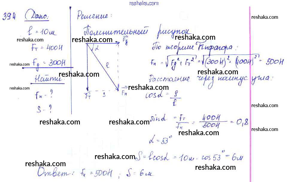 Решака - онлайн ответы Физика Лукашик, Иванова за 7-9 класс Сборник задач ФГОС 2011 - 394