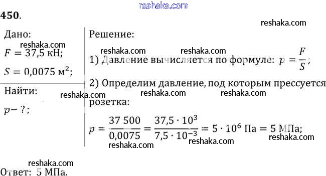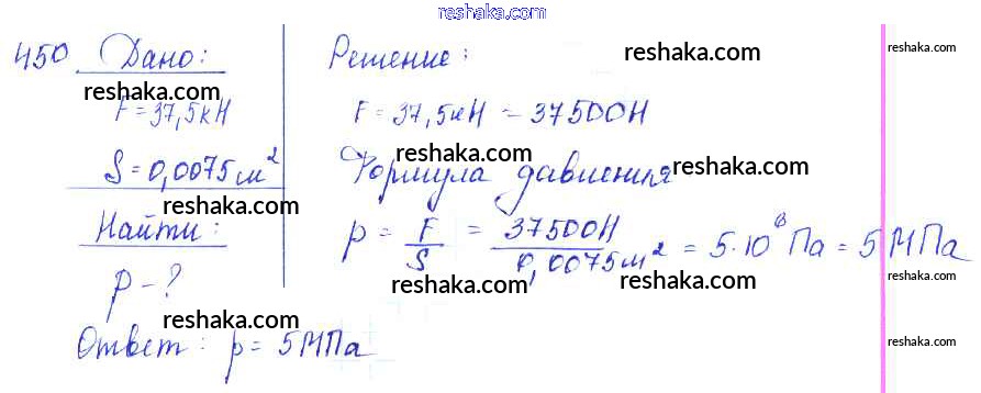 Решака - онлайн ответы Физика Лукашик, Иванова за 7-9 класс Сборник задач ФГОС 2011 - 450