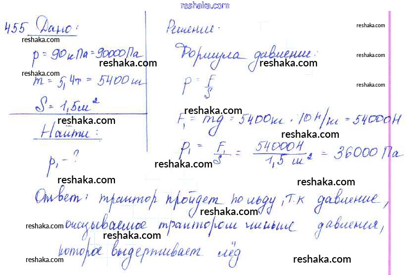 Решака - онлайн ответы Физика Лукашик, Иванова за 7-9 класс Сборник задач ФГОС 2011 - 455
