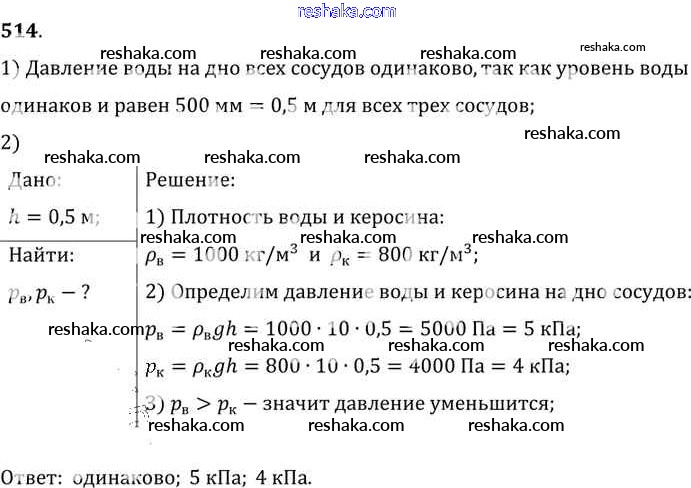 Решака - онлайн ответы Физика Лукашик, Иванова за 7-9 класс Сборник задач ФГОС 2011 - 514
